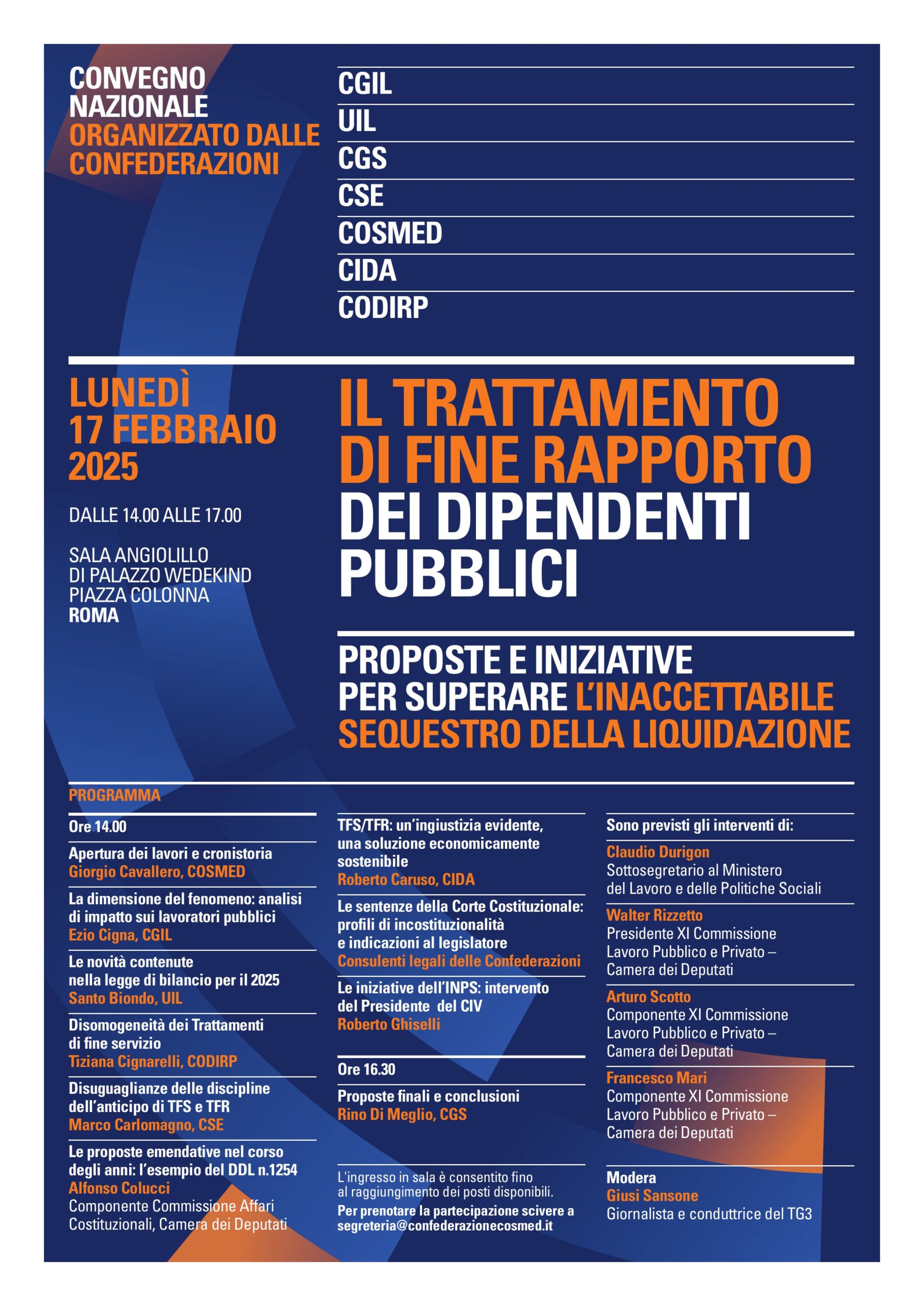 SAVE THE DATE – 17 febbraio 2025 – Il trattamento di fine rapporto dei dipendenti pubblici